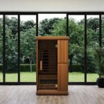 This sauna includes a built-in LCD touchscreen controller with Bluetooth audio and 6″ HiFi speakers, ensuring you can enjoy your favorite music during your sessions. The 8mm tempered glass door offers ultimate thermal retention, while the ergonomic backrest and removable, adjustable sauna feet cater to your comfort and convenience.