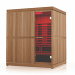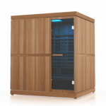 No need for compromises! The FD-5 Trinity stands as the exclusive combination sauna boasting authentic UL-listed infrared heater panels alongside a traditional sauna heater. The IR panels, red light therapy, and the traditional sauna heater are seamlessly integrated to offer the combined benefits of infrared warmth and the timeless allure of steam enveloping fragrant rocks.