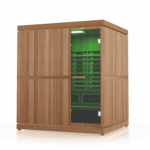 Experience rapid heat with our IR heaters, rigorously tested by Underwriter Laboratories, harmonizing with a traditional steam sauna stove. The penetrating short-wave far infrared deeply reaches muscles and joints, inducing a sweat 25 times more than carbon panel heaters. The traditional 240V/1PH 4.5kW sauna heater enhances the experience, allowing you to sprinkle water onto the rocks for a sumptuous steam sauna encounter, unlocking unparalleled benefits and intensity unique to steam saunas.