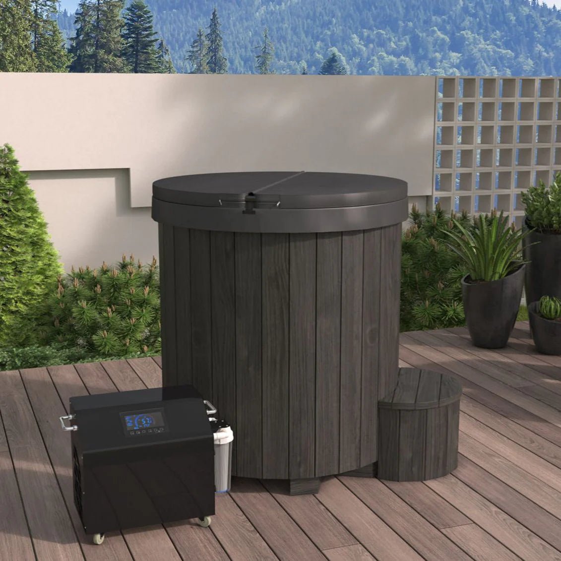 SaunaLife 1-Person Black Thermo-Pine Cold/Hot Plunge Tub – Model S1B – Outdoor Wellness Redefined