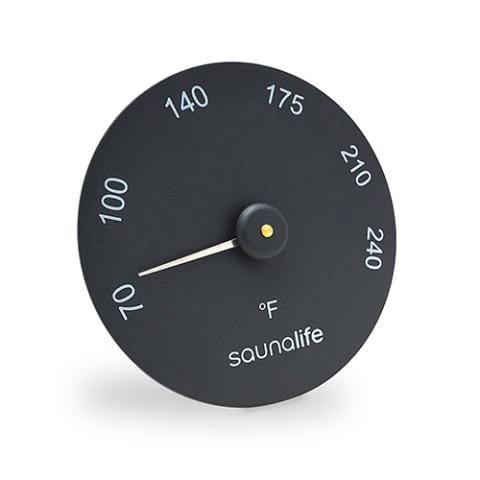 A charming hand-blown glass sand timer lets you monitor the duration of your sauna session, while the stylish round wall-mounted thermometer allows you to ensure an optimal temperature in the room.